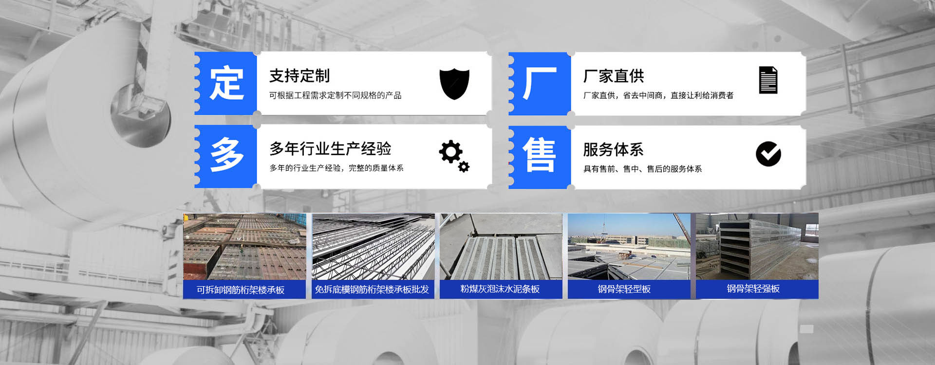 公司主營:免拆底模鋼筋桁架樓承板,可拆卸鋼筋桁架樓承板,鋼骨架輕型/強板,粉煤灰泡沫水泥條板。